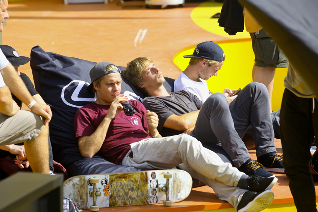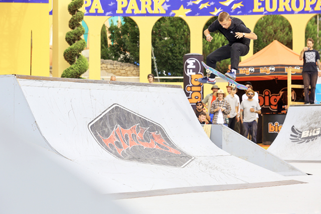 Eine besondere Sache in Rust ist die früher als B-Gruppe bezeichnete Liga der „ungesponsorten“, oder auch Teilnehmer der „Titus Locals Only Competition“. Auch die Jungs rippten was das Zeug hielt, und Gino Körner, der in Köln auch schon bei den Gesponserten mitgefahren ist, hatte mit wahnsinnig sicheren Lines am Ende den Sieg inne. Hast DU eigentlich EINEN 360 Flip Lipslide am Wochenende gebailt?