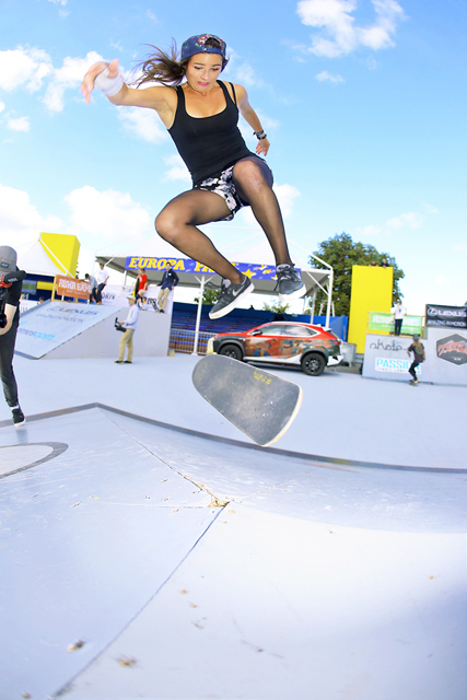 Doch zurück zum Anfang. Der Zeitplan sah vor, mit den Mädels zu beginnen und hier hat sich über das Jahr so Einiges getan. Viele neue Gesichter, und vor allen Dingen Beine, boten dem Zuschauer eine nie dagewesene Augenweide. Aber auch, weil die alle diese Mädels verdammt gut skaten können. Lea Schäfer hatte am Ende die Nase knapp vor Diana Kränsel vorne, die zwar lange nicht gesehen, aber kein bisschen an ihren Skate-Skills eingebüßt hat – im Gegenteil! Dritte wurde Catharine Marquis, die in Ulm ebenfalls eindrucksvoll bewiesen hatte, daß in den nächsten Jahren noch so einiges von ihr kommen wird. Und Lea, ach, die wird in ein paar Jahren sicher gar nicht mehr bei den Mädels zugelassen, wenn sie weiter so schnell lernt.