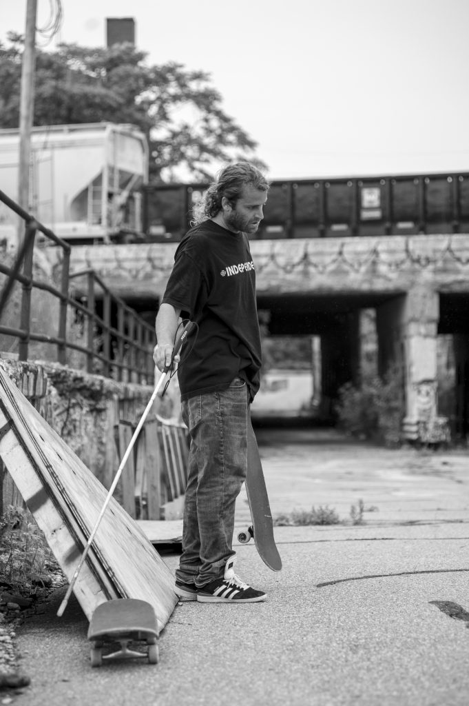 I just went into to a routine eye exam, just to get glasses pretty much, and then the optometrist noticed something that was a little bit off. Then I got passed around through specialists and eventually diagnosed with this disease. I really never let it bother me, I didn’t really stress on it as a kid, you just keep busy with other stuff, kid’s stuff. I mean in the back of my mind I always told myself, “I’m always gonna skate”, whether it’s just mini-ramp or like … I remember thinking alright I’m just gonna be a Rodney Mullen skater, I’ll just be a freestyler or something, like however I get to stay on my board. It really didn’t start affecting me until I was in my mid to late twenties is when I had to stop driving, and I actually started to consider myself a blind person. Thats when it had a real effect on kind of who I was, and what I did in life.