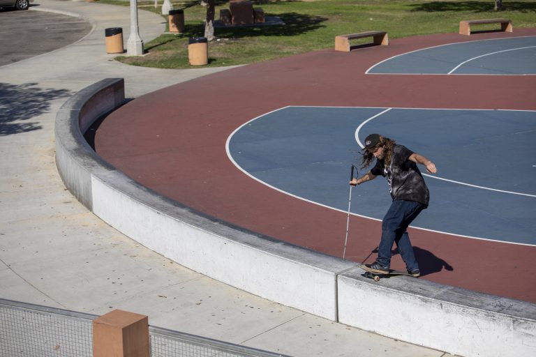 Yeah, that was definitely the hardest part. It still is. It’s more mentally challenging too. It’s way more stressful. But kind of makes it worth it a little bit more too.The process is just slow, walking out whatever the area that I’m skating. Using my cane to feel everything, and then starting with the most basic trick, even if it’s just like standing next to a ledge, ollieing onto to it, not moving and then warming up to it. Figuring out the timing and where I should start, but most spots usually have some landmark that I can use to tell where to start or when to stop. That’s really the process. It’s just pretty much the same as any skater, just figuring out what trick feels right for the spot, and what I think would feel good and look cool.