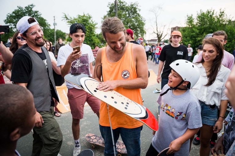 I kind of got into myself, just started with random interviews online and then I was thought maybe I should like go speak or something. Speaking somewhere isn’t as fun as when I actually go and speak in front of kids and then combine it with like the hands on, like actually skating with them. That’s the best, and that’s what I get the most enjoyment out of. It just feels good to work with the kids. It’s so cool.
