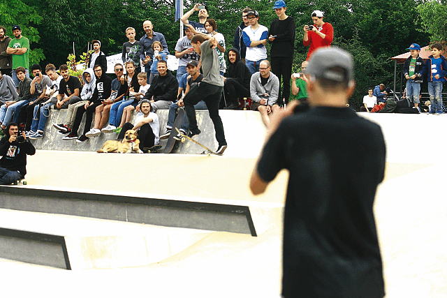 Der Tages-Plan sah zunächst eine Autogrammsession im Made-In Skateshop vor, aber ich fuhr die Jungs am Mittag einfach erstmal zum Lentpark. Skateboardtouren sind, gerade für mich als Photograph, stets eine kleine Herausforderung, was den optimalen und „dennoch für alle zufriedenstellenden“ Zeitablauf angeht. Also erst Skaten (dann sind an diesem Demotag auch schonmal alle aufs Board gestiegen), dann Autogrammstunde mit Pizza im Shop und dann die Demo – und wenn alles optimal läuft DANN noch Streetskaten gehen. Ihr seht, das kann schon ziemlich anstrengend sein, wenn man es denn wirklich wissen und das Maximale herausholen will!