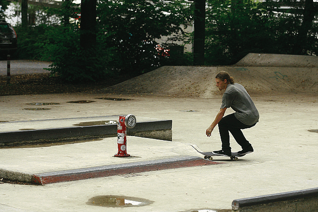 Für die nächsten sechs Tage sass ich am Steuer des Vito, während Newchurch den Chevy lenken sollte. Wir hatten eigentlich den Plan, mit den beiden deutschen Teamfahrern Matze (Blind) und Patrick (Cliche´) noch ein wenig Streetskaten zu gehen, aber das Wetter machte uns auch 150 Kilometer weiter nördlich einen Strich durch die Rechnung. So trafen wir uns mit Marcel Weber, chillten ein wenig und schlugen die Zeit bis um neun Uhr abends im Ibis Hotel tot.