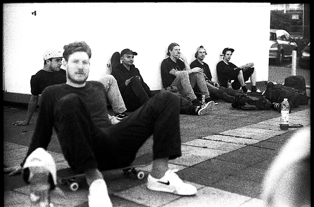 Letzten Endes erreichten wir Ravensburg um elf Uhr abends, wo uns Fiby vom FOSSY Skateshop schon erwartete. Er hatte nebst zwei Kästen Bier noch ein großes Sortiment an Süssigkeiten im Gepäck, was aller Leute Augen leuchten liess – Fiby weiss eben, wie man US-Pros glücklich macht! So endete der Abend sehr locker am Hotel, wahlweise draußen oder an der geschlossenen Bar, wo New schnell den Barkeeper mit unserem eigenen Bier machte. Um ein Uhr nachts waren dann letztenendes alle in den Betten um sich auf den nächsten Tag gebührend vorzubereiten – der Demo im Ravensburger Skatepark!