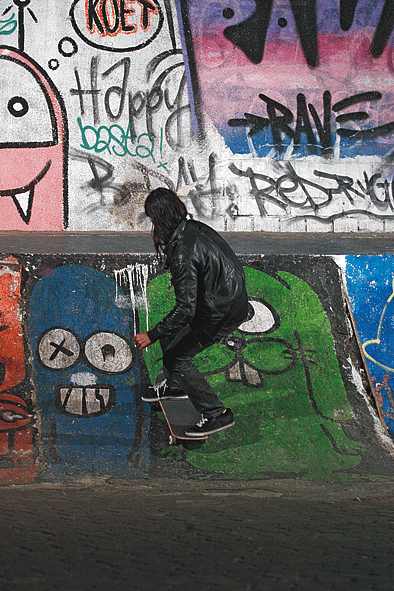 Während der Phase einer Videoproduktion, die durchaus mal fünf Jahre oder länger dauern kann, sammeln sich unzählige Tricks auf diversen Festplatten, und es ist immer wieder wundersam, wie Filmer den Überblick behalten. Welche Tricks davon dann allerdings in der finalen Produktion landen, hängt von vielen Faktoren ab, vor allem aber, wie es letztendendes ins Gesamtbild passt. Auf der FLIP Deutschland Tour im Sommer 2008 landeten die Jungs an einem regnerischen Tag unter der Mülheimer Brücke in Köln, wo seinerzeit die Quarter noch wahrlich „ghetto“ war. David spiele eigentlich nur ein wenig an der Lip rum, aber kam dann irgendwann auf die Idee, einen Frontfoot Impossible Blunt fakie zu probieren. Was soll man sagen, nach einer halben Stunde hatte David nicht nur den Trick perfekt gestanden, sondern auch einen weiteren für seinen „Extremely Sorry“ Part eingetütet (der letzten Endes auch wirklich im Video zu sehen war) und ich hatte eine Sequenz, die es bis ins The Skateboardmag schaffte. Besser hätte man einen Regentag wohl kaum nutzen können und hey, war das eigentlich ein „First-Ever“?! – Thomas Gentsch
