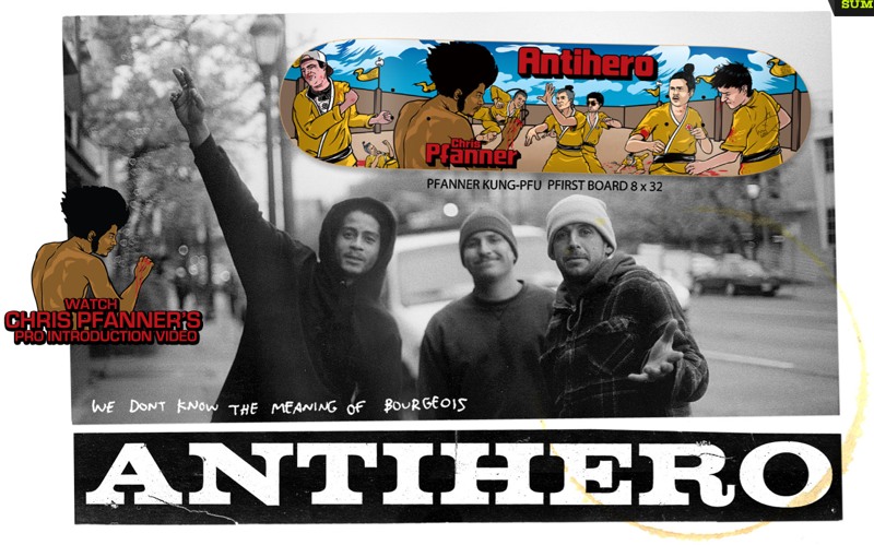 Wie wir wissen, hat Chris Pfanner verdientermaßen sein Pro-Board bei Antihero bekommen. Was viele noch nicht wissen: Dieses Teil könnt ihr ab sofort im Skateshop eures Vertrauens oder hier käuflich erwerben.
