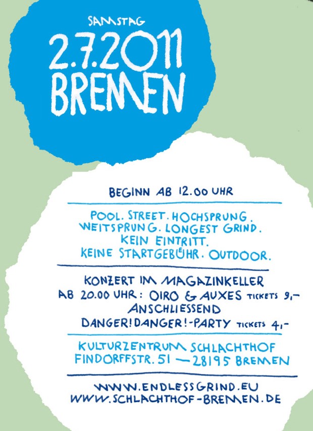 Alle wichtigen Informationen könnt ihr dem Flyer entnehmen, oder ihr besucht endlessgrind.eu bzw. schlachthof-bremen.de.