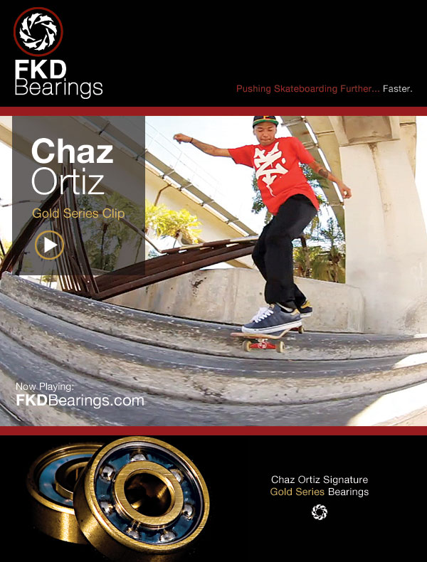 Chaz Ortiz gibt mal wieder Gas und damit er auch schnell genug unterwegs ist, packt er sich seine eigenen FKD Gold Bearings in die Rollen. Den Clip gibt es hier zu sehen.
