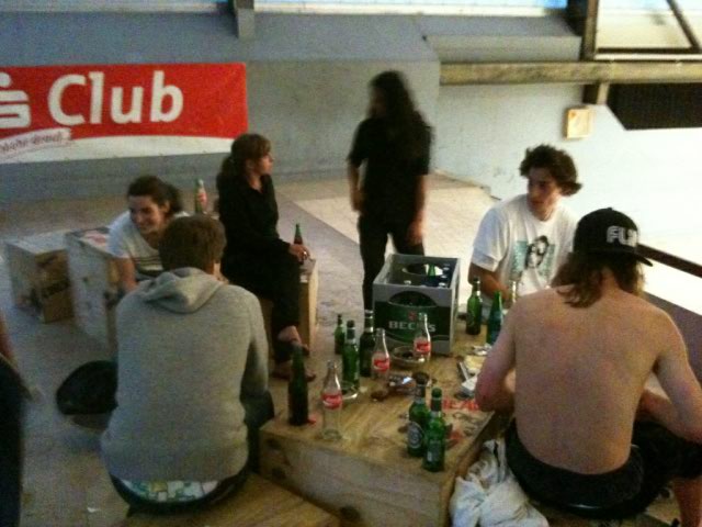 Die Jungs sind gestern abend in Aurich angekommen und haben sich die Halle schon mal angesehen. Sehr lustig auch Thomas Gentschs (gewollte) Bildunterschrift mit „Warum up“ anstatt „warm up“. Eben, warum warm up, wenn man Bier und Pizza hat? Danke hierfür an Martin von der Skatehalle Aurich! Heute um 16.00 Uhr geht dann die Action in der Skatehalle in Aurich. Don’t miss it!