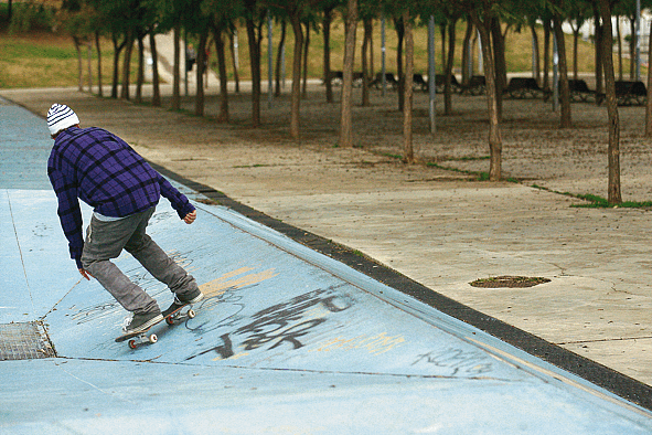 Als Gentsch 2010 mit den Sweet Jungs in Barcelona war begleitete ihn Dennis Klüssendorf, der es eine Woche lang schaffte, jeden Abend zu feiern, aber auch jeden Tag skaten zu gehen und zwar mit Vollgas. Schlaf war da eher zweitrangig und das erklärt vielleicht, warum er diesen Nollie Backside Nosebluntslide Revert so lässig aussehen lässt. Aufwachen Klüssiiiii…!