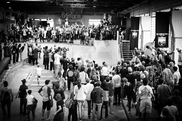 Die Halle war sichtlich überfüllt, nicht nur was die Zuschauer anging, sondern auch auf dem Course, während der Practise-Session, war es nur mit Glück möglich, eine Line mit mehreren Tricks zu versuchen, ohne dass es zu Kollisionen kommt. Trotz Allem ging es sowohl auf dem Course und auf der Zuschauertribüne heiß her und man konnte sich immer arrangieren. Einige Highlights habe ich für Euch im Gepäck und will Euch diese nicht vorenthalten.
