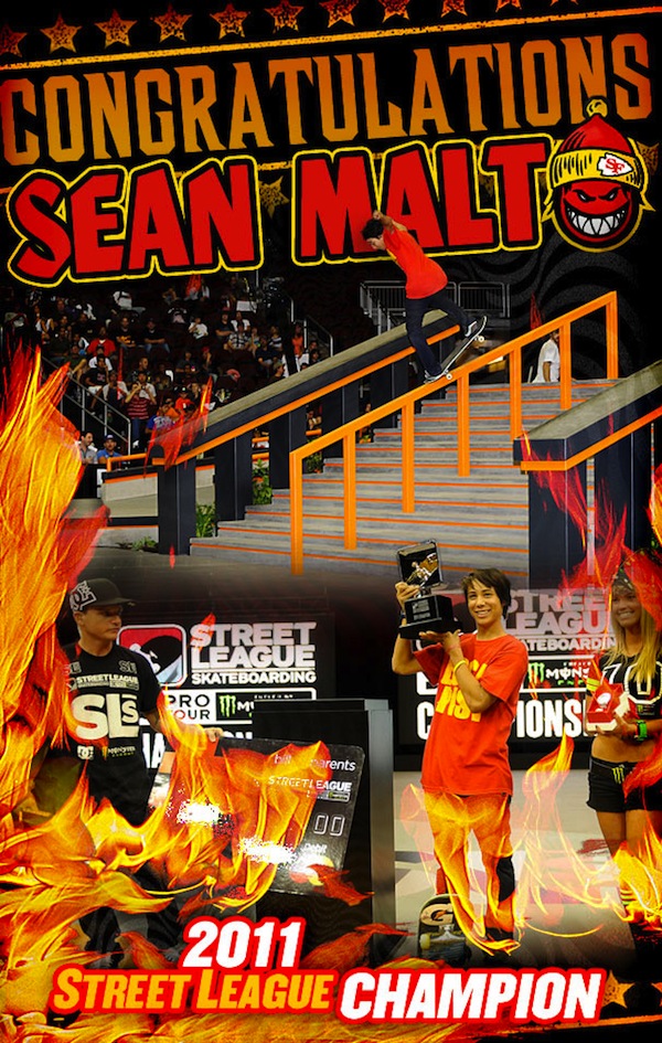 Der Spitfire Rider Sean Malto hat den Street League Contest in New Jersey vor Nyjah Huston und Chris Cole gewonnen und das freut seinen Sponsor ganz offensichtlich.