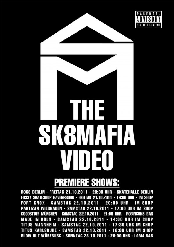 Das Sk8Mafia Video feiert Deutschland Premiere und die Jungs, die in L.A. auf der Weltpremiere waren, sind extrem begeistert! Wo genau du dir das Teil mit deinen Kumpels und guter Stimmung auf einer großen Leinwand ansehen kannst, verrät dir dieser Flyer: