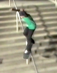 Wie ein Typ skatet, der sich mit anderen Kumpels mit voller Absicht mit der Faust [...]