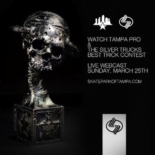 Heute nicht vergessen: Ab 17:00 Uhr wird der Tampa Pro Contest Live im Netz übertragen, sowie der Silver Trucks Best Trick Contest. Den Live Webcast findet ihr mit freundlicher Unterstützung von Nike SB bei den Tampa Pro Jungs.
