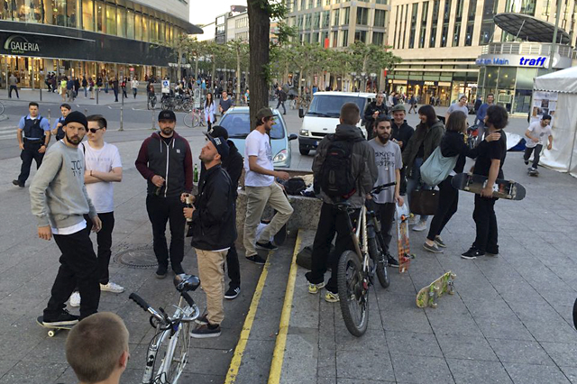 Momentan durchläuft das VANS Video ja so etwas wie eine kleine „Deutschland-Premierentour“, und am letzten Donnerstag war Frankfurt an der Reihe. Das war ganz nett gemacht, in einer Bar neben dem Railslide Laden hatte man den Biergartenbereich dafür eingenommen, aber das Beste an der Sache war, das sich alle vorher an der Hauptwache trafen, dort ein paar Bier tranken, sich unterhielten oder eben noch skateten. Da kam so richtig dieser alte so wunderbare Flair wieder auf, den man früher immer genoss – mit den Homies in der City sein, die Stadt einfach atmen und geniessen. Das wirklich sehr gelungene VANS Video tat sein Übrigens für einen echt gelungenen Abend, und wir freuen uns schon auf heute Abend, wo es den Streifen dann nochmal zu sehen gibt – in Köln!