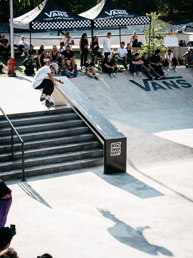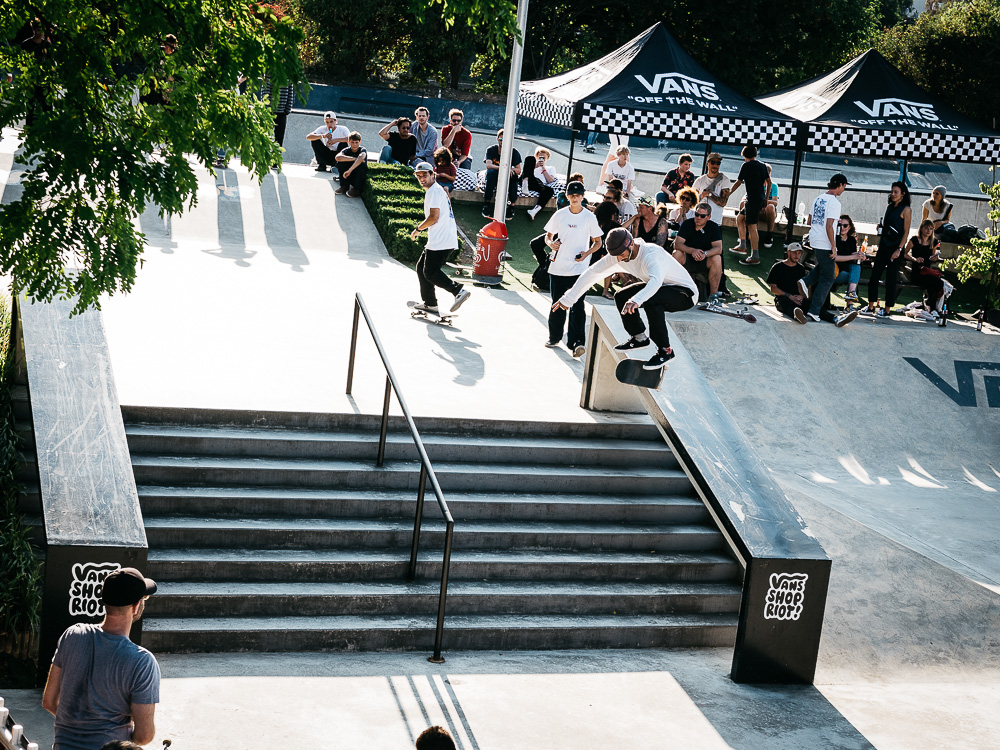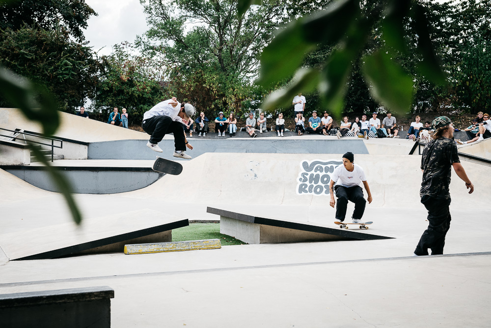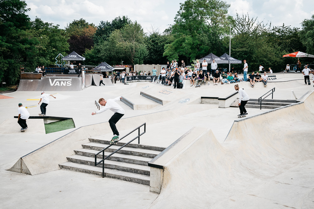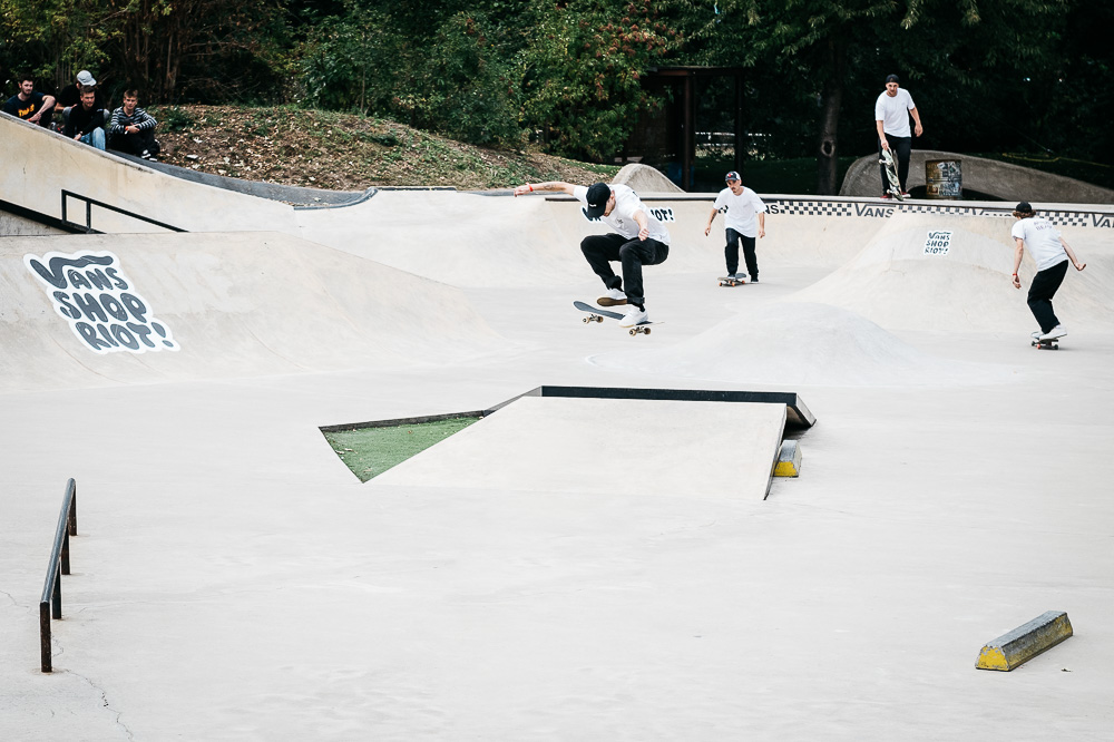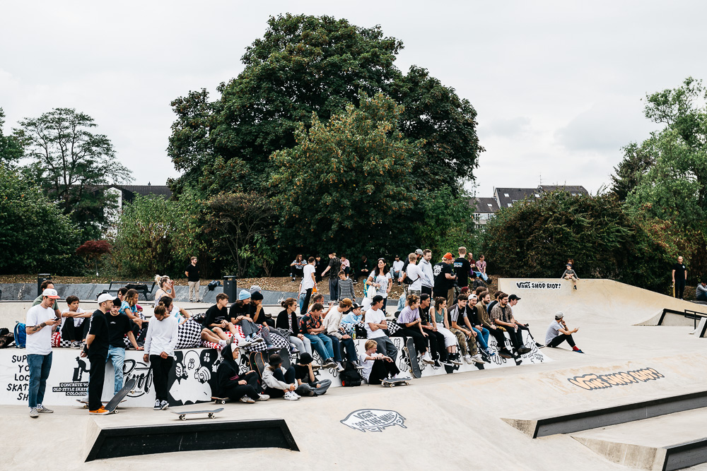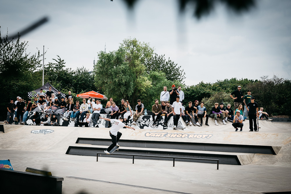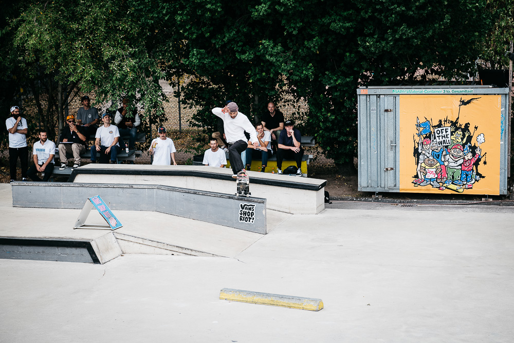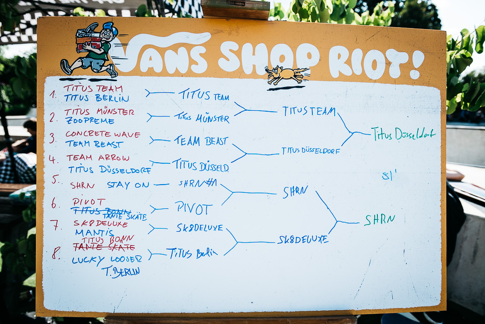 Mit dem bereits elften Mal in Folge, fand dieses Jahr ein weiterer Vans Shop Riot hierzulande statt, bei dem nach und nach (Shop)-Teams gegeneinander antreten mussten um schlussendlich die besten Skater des jeweiligen Shops zu küren. Selbstverständlich lockte hierbei ein Preisgeld von rund 3750€, sodass Teams aus den verschiedensten Ecken Deutschlands anreisten. Somit war das Starterfeld breit gefächert und der Contest zog Teams aus allem Himmelsrichtungen an. Die Lokalmatadore von Pivot, Concrete Wave sowie Tante Skäte bekamen Besuch von SHRN aus München, Arrow & Beast aus Stuttgart, Mantis aus Hamburg, StayOn aus Koblenz, Team Titus, SkateDeluxe und den Titus Standorten Düsseldorf, Berlin, Münster & Bonn.