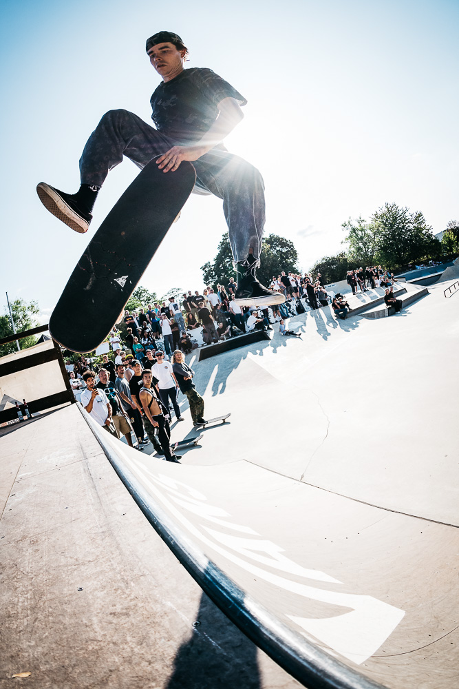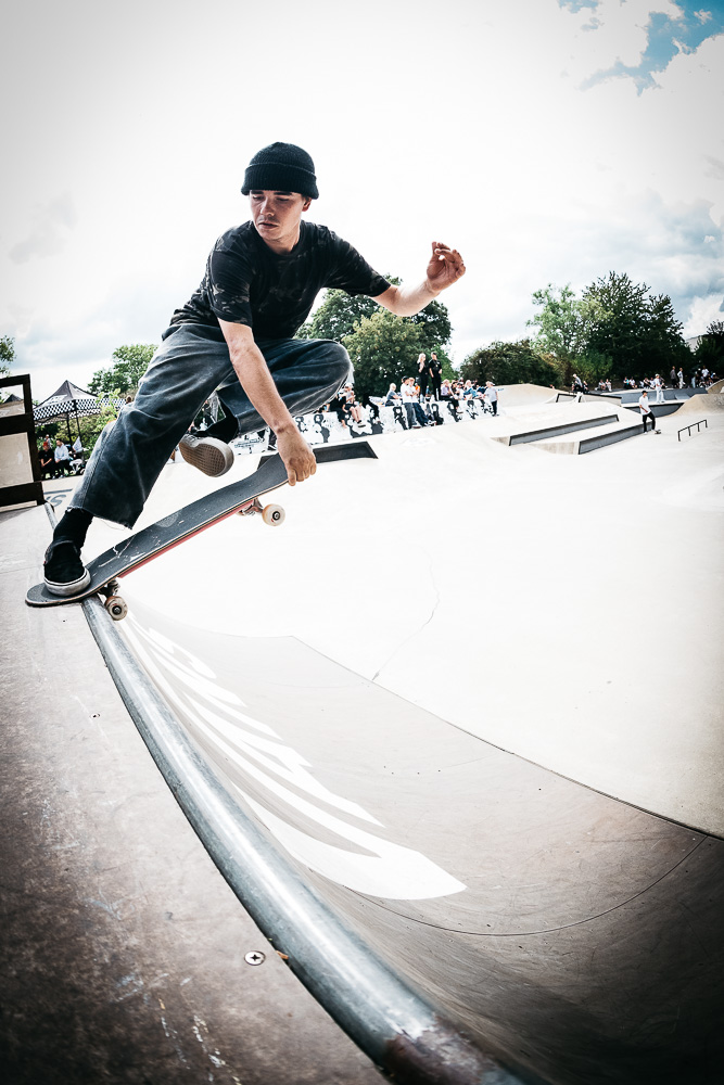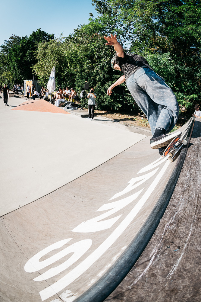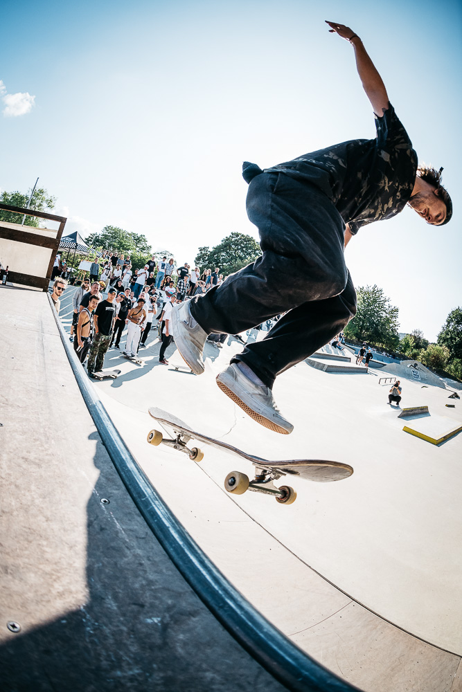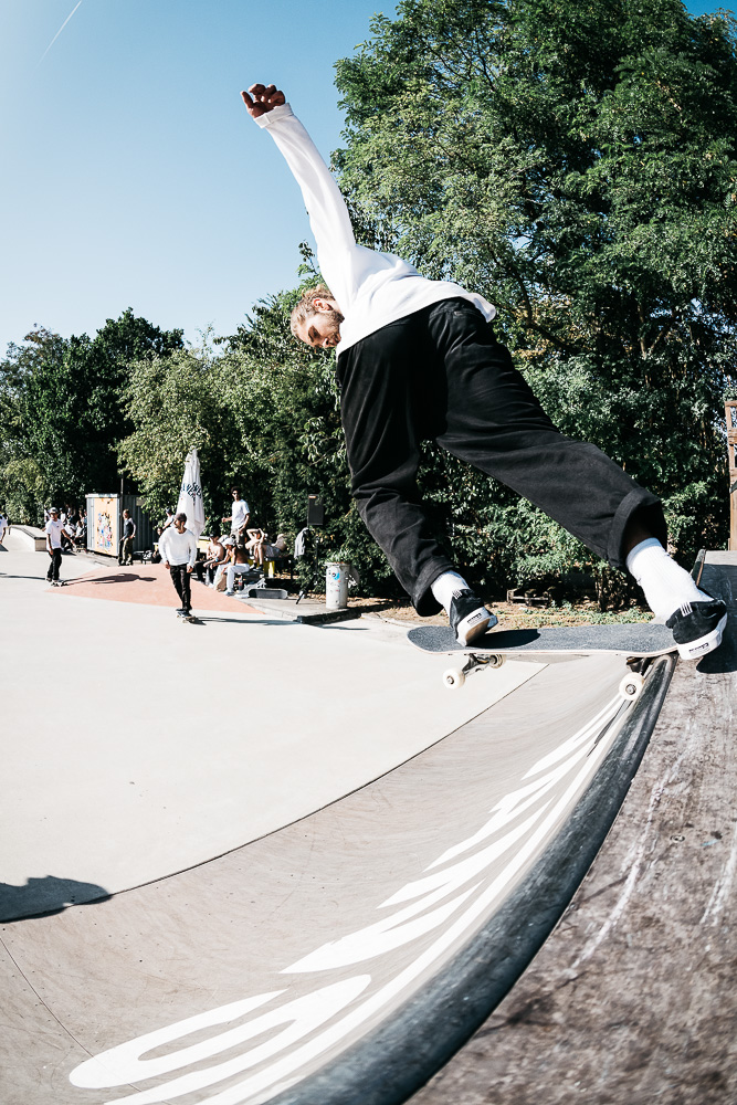 Währendessen die Judges um Tom Derichs, Christian Pelz & Alkan Ulutas über den Tag einiges zu tun hatten, wurde abends von Jochen Bauer, dem MC des Tages, zum Best Trick Session am Stair-Set + Rail gerufen. Auch zum Abschluss des Tages wurde hier von Bartosz Ciesielski noch einmal sein Können unter Beweis gestellt, sodass es nach und nach Tricks von ihm regnete! Die Best Trick Section teilte er sich mit Bobby Grey, Daniel Trautwein, Douwe Macaré und Vladik Scholz, die auch alles dafür gaben, um sich die 500€ Preisgeld einstecken zu können. Nachdem schon eine Tricks hätten downgehen sollen, war es selbst für die Zuschauer klar, dass der Boden in der Landung dermaßen undankbar ist, sodass es fast schon lächerlich war, dass perfekt gelandete Tricks nicht ausgefahren werden konnten. Wie dem auch sei, Douwe Macaré machte sich dies zum Vorteil, fuhr somit nicht das Stufen-Set mit Rail, sondern die Ledge, die seitlich eine etwas bessere Ausfahrt hatte und gewann den Best Trick mit einem Kickflip Nosegrind an ebendieser.