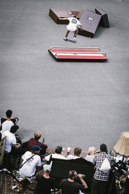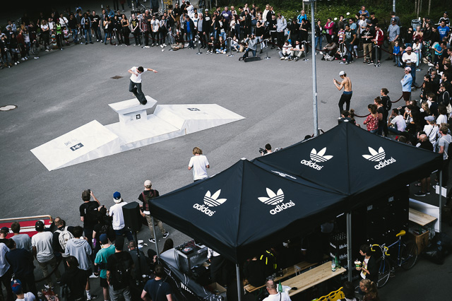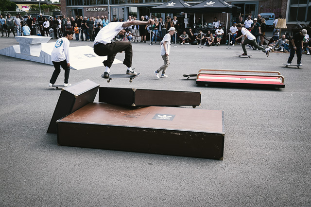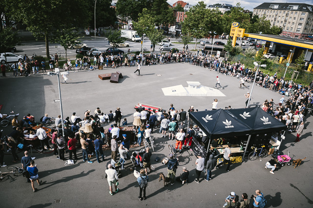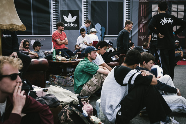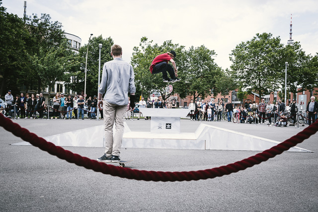 Fast unglaublich, äußerst selten, aber dennoch wahr. Letzten Samstag, pünktlich zum „Welcome to the Lobby“-Contests des gleichnamigen Skateshops inmitten der Hamburger Schanze, konnte ganz entgegen der Wettervorhersage und des üblichen Schietwetters der Tag unter prallem Sonnenschein verbracht werden. Dementsprechend gut war die Laune bei allen Angereisten, sei es aus München, Berlin oder Stuttgart und natürlich bei den Locals, die schon seit Tagen erwartungsvoll auf den Contest und die zu skatenden „Adidas“-Obstacles an der Rindermarkthalle entgegenfieberten.
