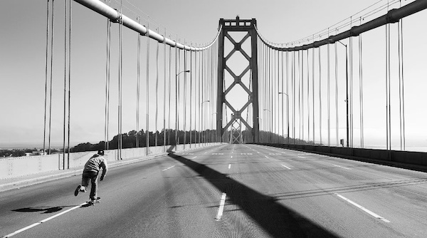 Wegen Photos wie diesem hier von DGK und DC Shoes Pro Josh Kalis, der einsam über die Bay Bridge in San Fracisco pusht.